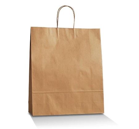 Features a paper twist handle and wide bottom gussests